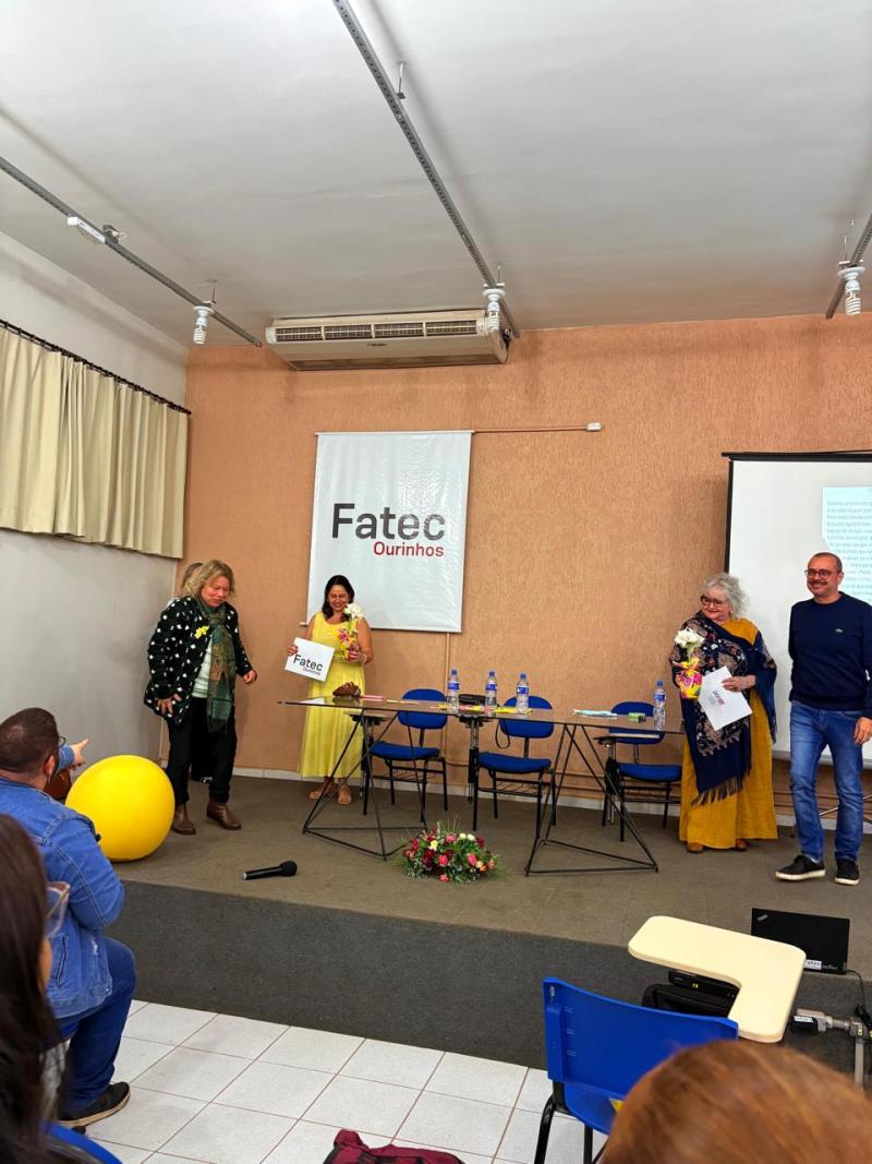Roda de conversa no anfiteatro da Fatec- Ourinhos coordenada por membros do Gepo.